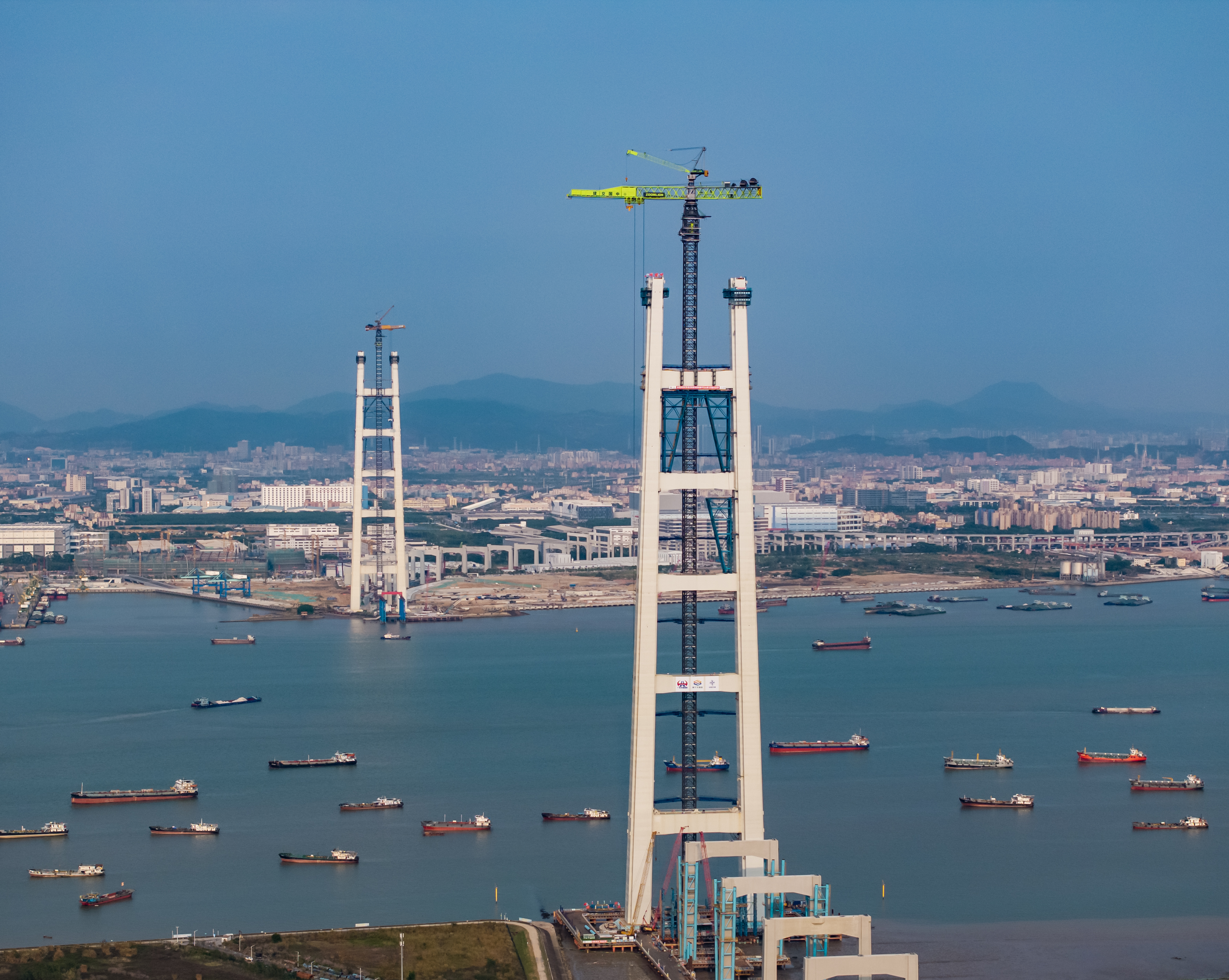 橋塔鋼殼節(jié)段由工廠自動化生產(chǎn)線預(yù)制,運抵現(xiàn)場后采用全球最大移動平衡重塔式起重機R20000-720吊裝,配合519種碰撞風(fēng)險算法,保障極端環(huán)境下的毫米級吊裝。吊裝過程中,北斗高精度定位系統(tǒng)與云端平臺實時聯(lián)動,動態(tài)采集數(shù)據(jù)、規(guī)劃最優(yōu)路徑,數(shù)據(jù)回傳數(shù)字孿生系統(tǒng)復(fù)核,形成閉環(huán)管控。
