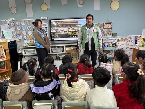 互動環(huán)節(jié)中,老兵們主動與孩子們交流,引導(dǎo)孩子們思考“如何珍惜幸福生活”。孩子們紛紛舉起小手,用稚嫩的聲音表達(dá)對祖國的熱愛和對英烈的崇敬。網(wǎng)格員為積極發(fā)言的孩子貼上鼓勵貼紙,進(jìn)一步激發(fā)孩子們的參與熱情,讓愛國種子在幼小的心靈中悄然生根發(fā)芽,也讓紅色薪火在潛移默化中傳遞。