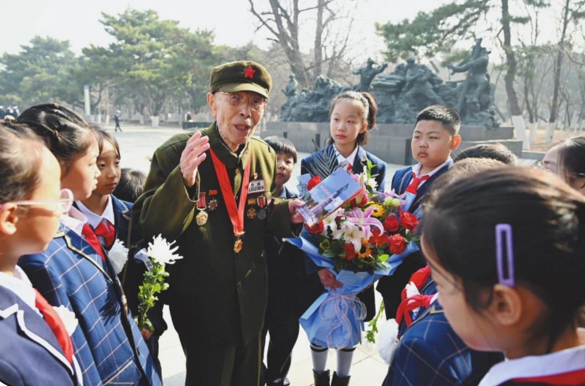 清明節(jié)臨近,全省各地開展“清明祭英烈”活動(dòng)。日前,沈陽市各界人士走進(jìn)沈陽抗美援朝烈士陵園,祭掃獻(xiàn)花,緬懷英雄。現(xiàn)場(chǎng),92歲志愿軍老戰(zhàn)士金東輝為孩子們講述抗美援朝的英雄事跡。(遼寧日?qǐng)?bào)記者 趙敬東 攝)