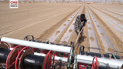 在高標(biāo)準(zhǔn)棉田里,兩臺搭載北斗導(dǎo)航系統(tǒng)的現(xiàn)代化棉花播種機(jī)來回穿梭,覆膜、播種、覆土等工序一氣呵成,一臺機(jī)器一天可完成上百畝地的播種任務(wù),還能實(shí)現(xiàn)無人駕駛、精準(zhǔn)直線播種、地膜覆蓋、滴灌帶鋪設(shè)等多種工作,播種效率較傳統(tǒng)方式大幅提升。