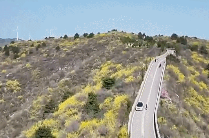 眼下,在河南新鄉(xiāng)衛(wèi)輝市太行山區(qū),萬畝野生連翹迎來盛花期,漫山金黃鋪滿山巒,秀美風(fēng)光吸引了各地游客觀光游覽、打卡拍照。