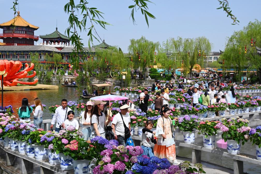 4月5日,游客在河南省開(kāi)封市翰園碑林游覽玩耍。新華社發(fā)(李俊生攝)