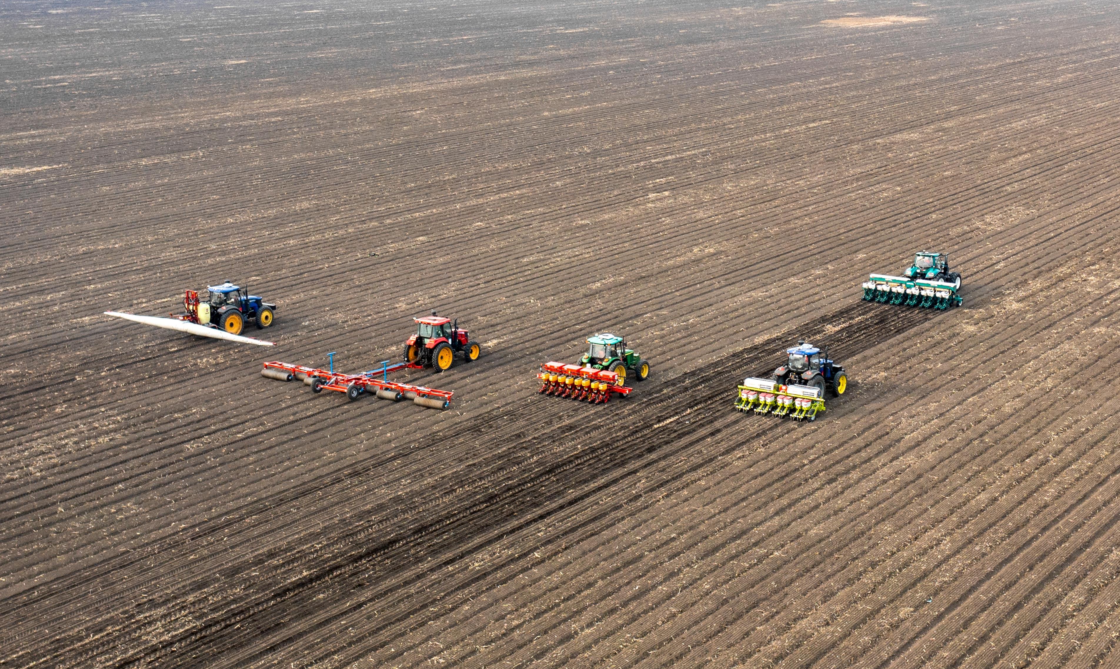 2023年春,黑龍江雙鴨山,北大荒農(nóng)業(yè)股份友誼分公司第五管理區(qū)玉米智能機(jī)械化作業(yè)播種現(xiàn)場(chǎng)。