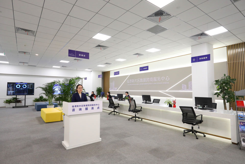 中國(上海)自由貿(mào)易試驗區(qū)臨港新片區(qū)數(shù)據(jù)跨境服務中心內(nèi)景。該中心4月7日啟用運營,致力于為數(shù)據(jù)處理者提供全方位、全流程數(shù)據(jù)跨境服務,包括材料受理、業(yè)務咨詢等,在臨港新片區(qū)打造數(shù)據(jù)跨境流動的綠色通道(2024年4月9日攝)。