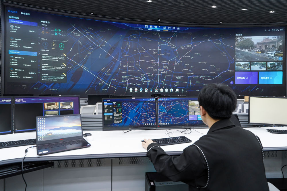 工作人員在江蘇省南京市城市運行管理中心指揮大廳操作“一網統(tǒng)管”指揮調度系統(tǒng)(2024年4月11日攝)。近年來,南京市積極構建數(shù)字化、智能化、智慧化城市治理體系,將城市運行“一網統(tǒng)管”作為推進城市數(shù)字化轉型、城市治理體系和治理能力現(xiàn)代化的重要工作。