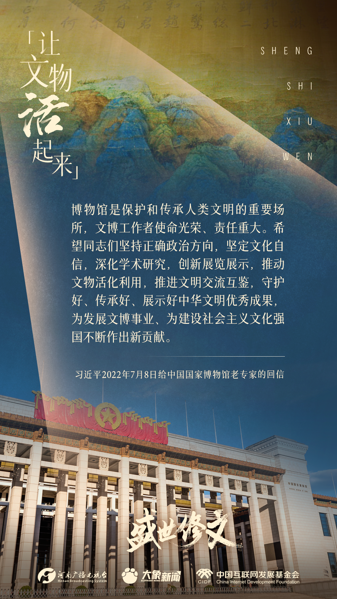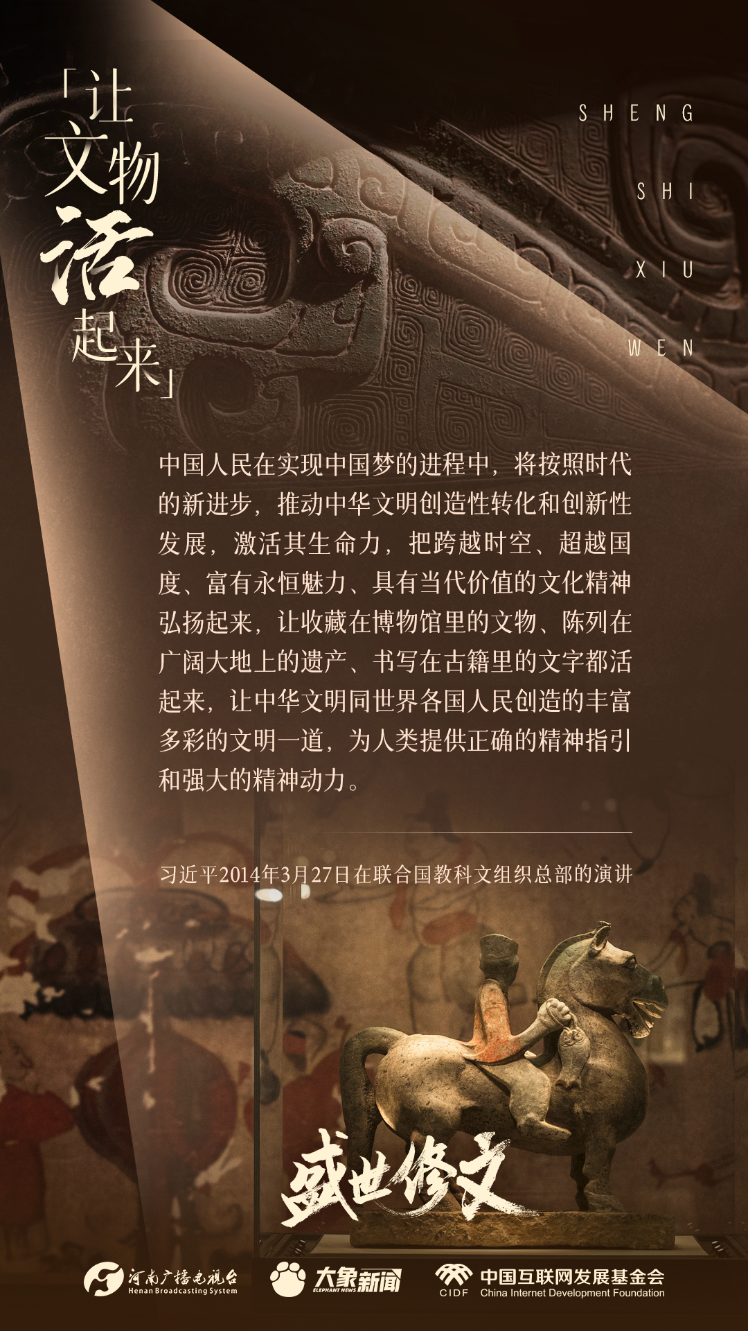 河南廣播電視臺大象新聞大型融媒體報道《盛世修文》,深入闡釋習近平文化思想,著力推進黨的創(chuàng)新理論飛入尋常百姓家。