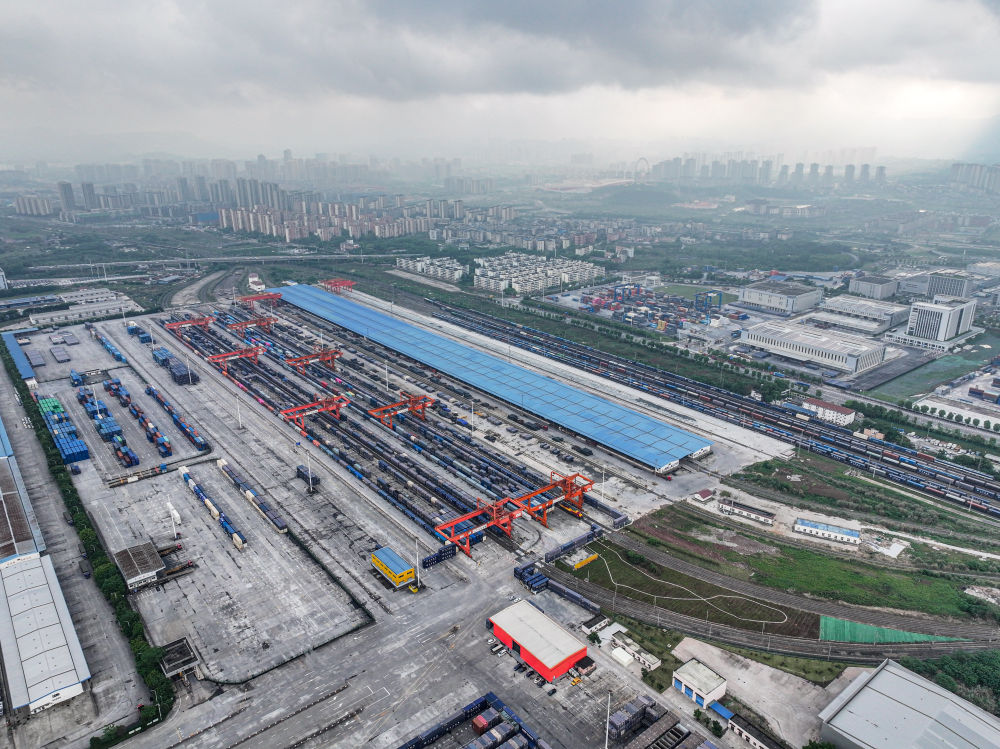 自重慶國際物流樞紐園區(qū)向北,一列列滿載貨物的中歐班列經新疆霍爾果斯口岸出境,聯結起區(qū)域開放發(fā)展之路。