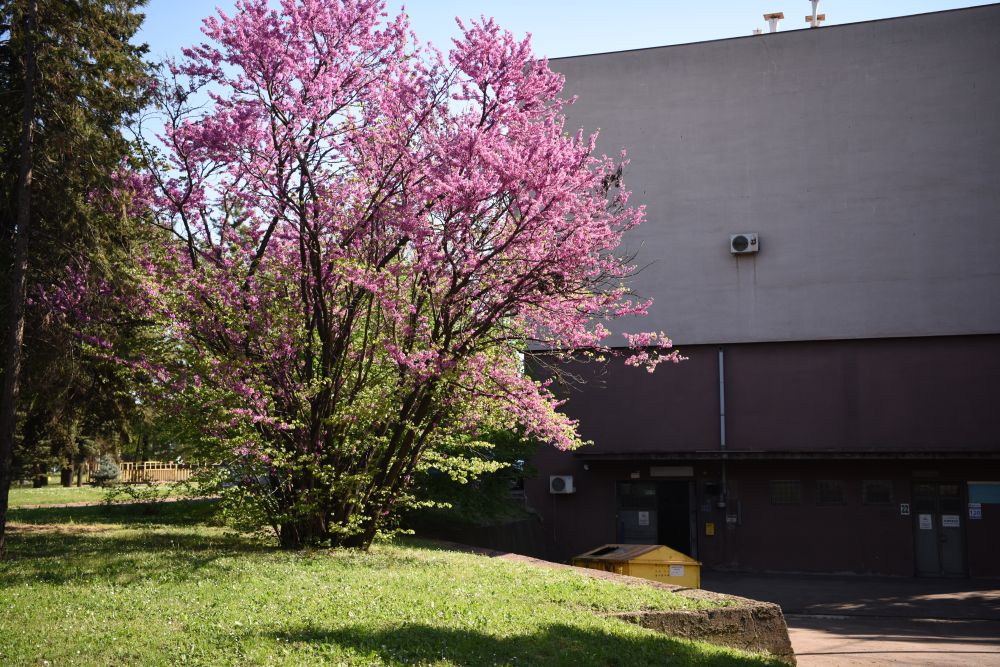 斯梅戴雷沃鋼廠里盛開的南歐紫荊花。