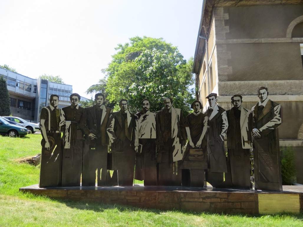 在里昂中法大學(xué)歷史博物館前方,屹立著廣州市政府贈(zèng)送的雕像。蔡元培、常書鴻等10位與里昂中法大學(xué)關(guān)系密切的中國(guó)學(xué)者眺望前方,注視著來來往往的留學(xué)生。