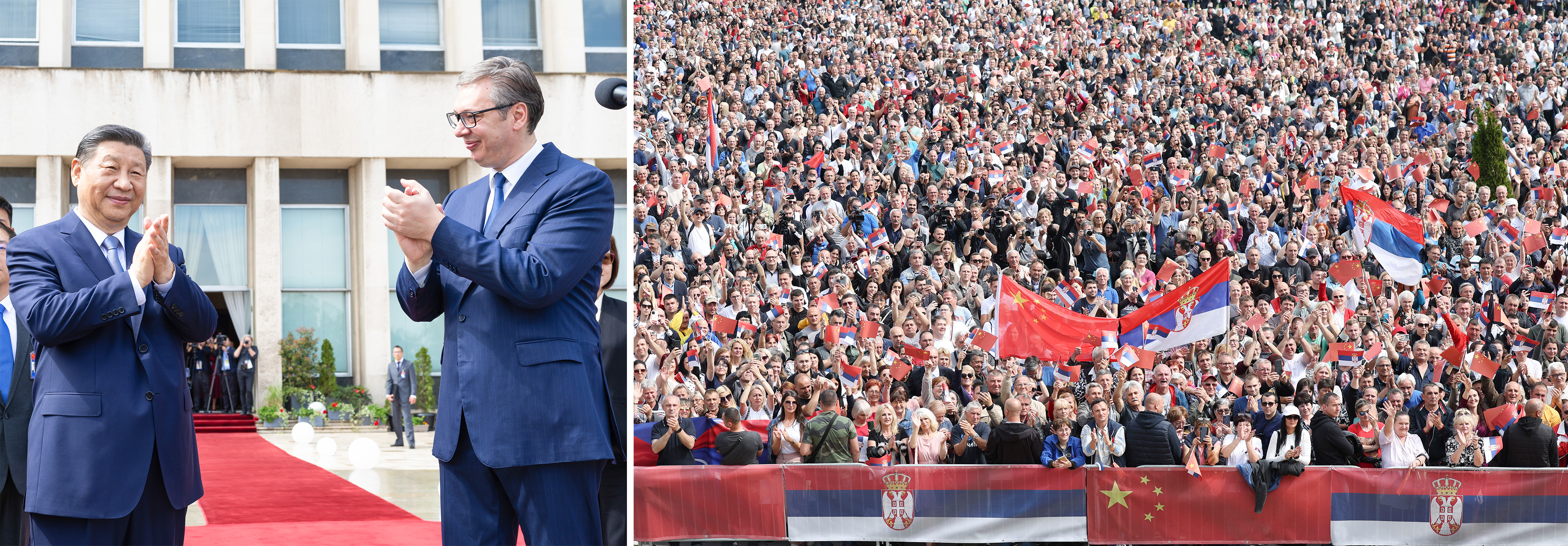 訪問塞爾維亞,習(xí)近平主席宣布中方支持新時代中塞命運(yùn)共同體建設(shè)的首期6項務(wù)實(shí)舉措。武契奇總統(tǒng)表示,塞方堅定支持并將積極參與習(xí)近平主席提出的全球發(fā)展倡議、全球安全倡議、全球文明倡議,同中方密切多邊戰(zhàn)略協(xié)作,共同反對霸權(quán)強(qiáng)權(quán),維護(hù)聯(lián)合國憲章宗旨,捍衛(wèi)國際公平正義。