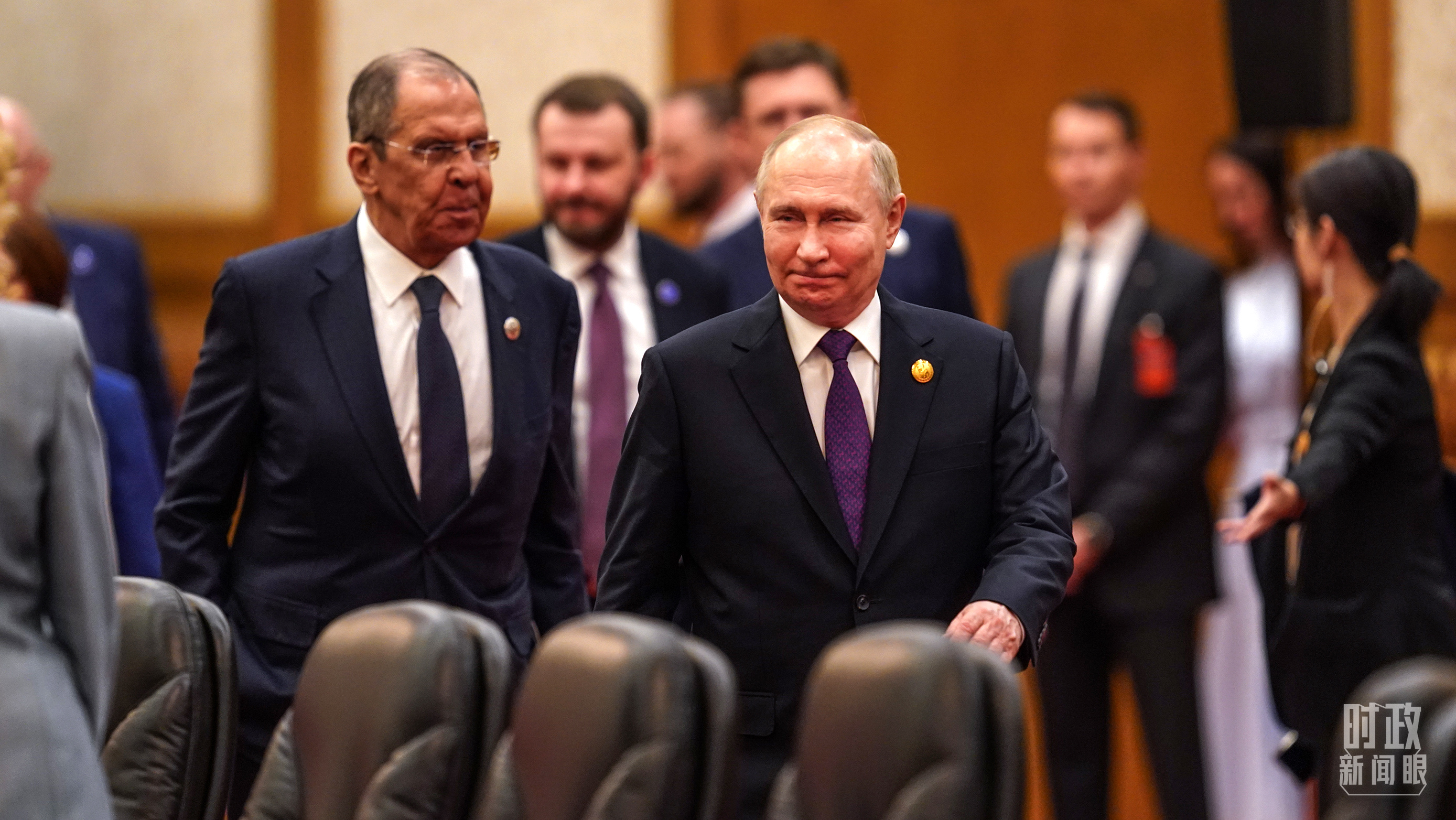 普京總統(tǒng)步入會(huì)談廳。(總臺(tái)國(guó)廣記者李晉拍攝)