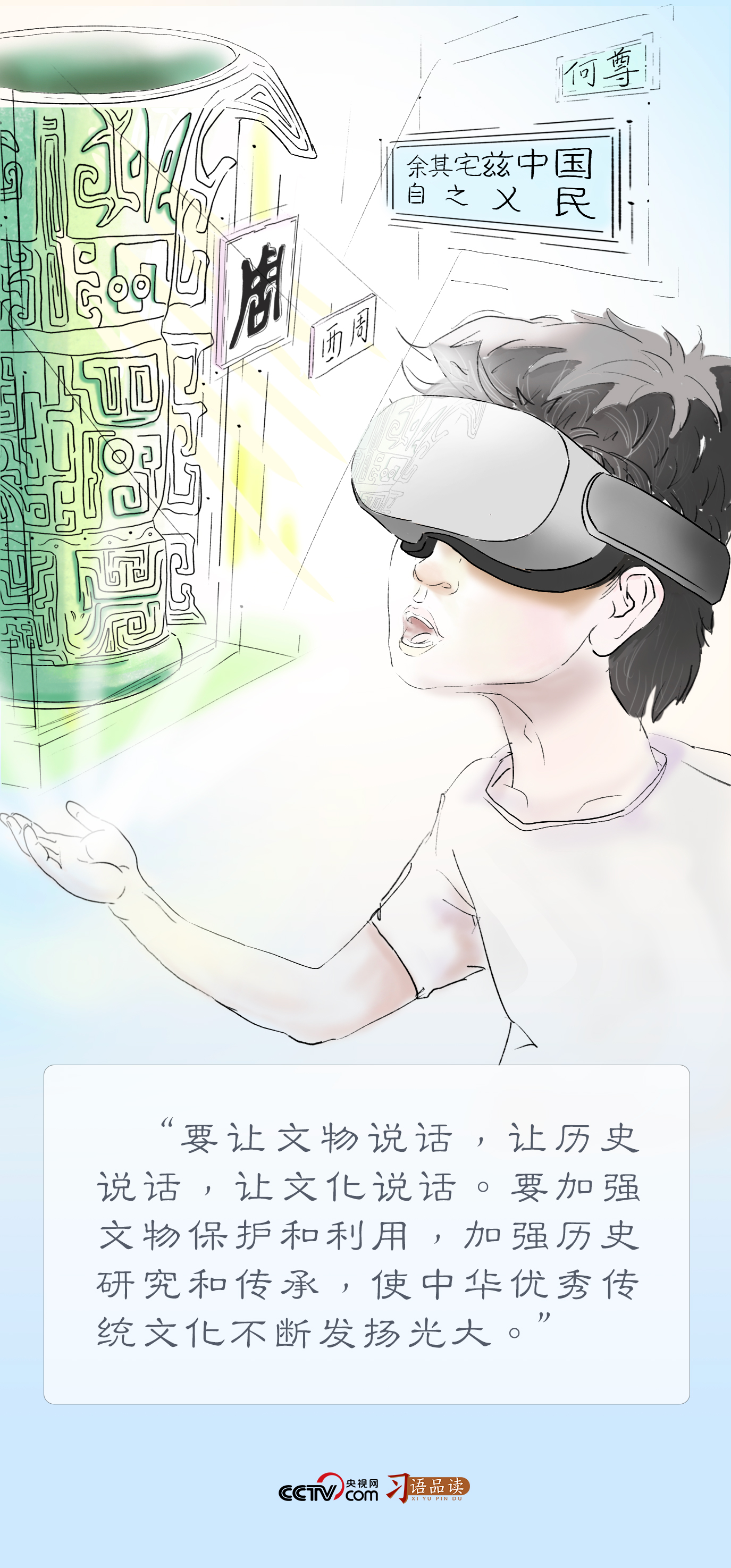 “讓收藏在博物館里的文物、陳列在廣闊大地上的遺產(chǎn)、書寫在古籍里的文字都活起來??倳浻靡粋€“活”字,道出使中華優(yōu)秀傳統(tǒng)文化不斷發(fā)揚光大的方向和目標(biāo)。