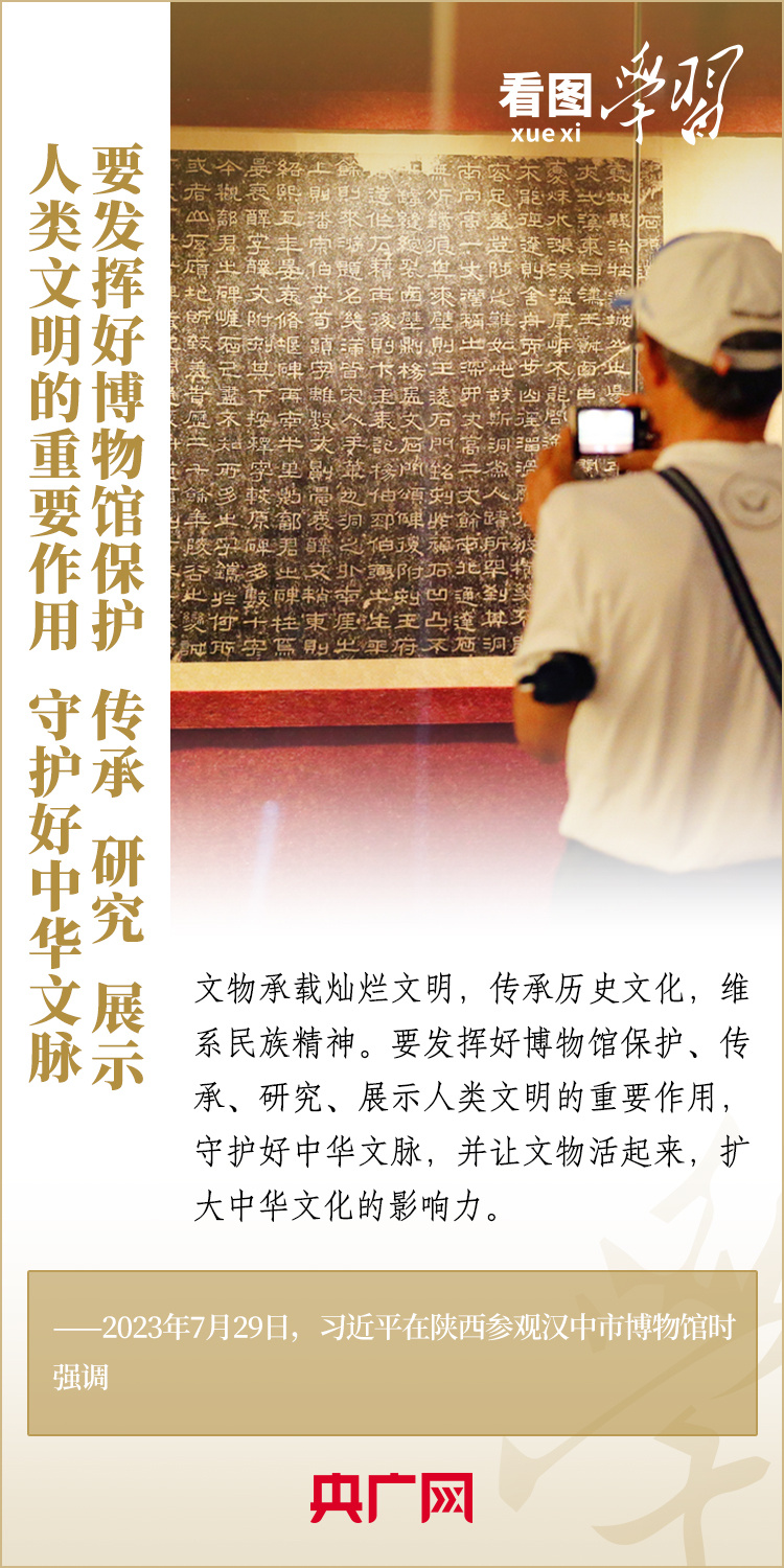 “一座博物館就是一所大學(xué)?!薄安┪镳^很重要,我從小就愛(ài)看博物館,小時(shí)候北京的博物館我差不多都看過(guò)了”“博物館建設(shè)要更完善、更成體系,同時(shí)發(fā)揮好博物館的教育功能”……在國(guó)內(nèi)考察中,習(xí)近平總書(shū)記曾經(jīng)多次走進(jìn)當(dāng)?shù)夭┪镳^,了解館藏文物的收藏、保護(hù)、研究情況,對(duì)博物館建設(shè)和利用作出重要指示。一起來(lái)學(xué)習(xí)!