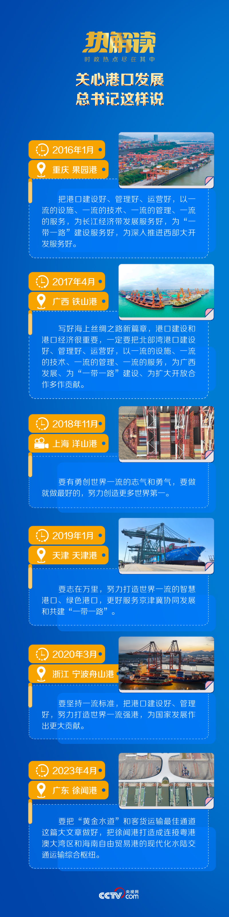 總書記曾深刻指出:“經(jīng)濟強國必定是海洋強國、航運強國。”他希望我國港口建設(shè)“要志在萬里”,“為國家發(fā)展作出更大貢獻”。