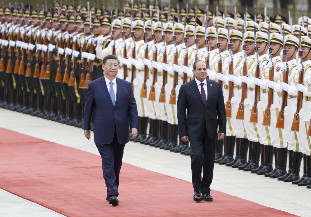 塞西表示,很高興來華進(jìn)行國事訪問并出席中阿合作論壇第十屆部長級會議開幕式。當(dāng)前世界正處于深刻復(fù)雜變化之中,中東地區(qū)深陷危機(jī)。埃方期待同中方進(jìn)一步深化全面戰(zhàn)略伙伴關(guān)系,努力促進(jìn)地區(qū)和平穩(wěn)定。埃方恪守一個中國原則,堅定支持中方在涉臺、涉港、涉藏、人權(quán)等核心利益問題上的立場,堅定支持中國實(shí)現(xiàn)國家完全統(tǒng)一。埃方歡迎更多中國企業(yè)赴埃投資合作,助力埃及制造業(yè)發(fā)展和工業(yè)化進(jìn)程。希望以今年“埃中伙伴年”為契機(jī),密切人文交流,加強(qiáng)兩國在信息通訊、人工智能、新能源、糧食安全、金融等方面合作。埃方贊賞習(xí)近平主席提出的系列全球倡議,愿同中方密切多邊協(xié)作,為人類和平進(jìn)步作出積極貢獻(xiàn)。