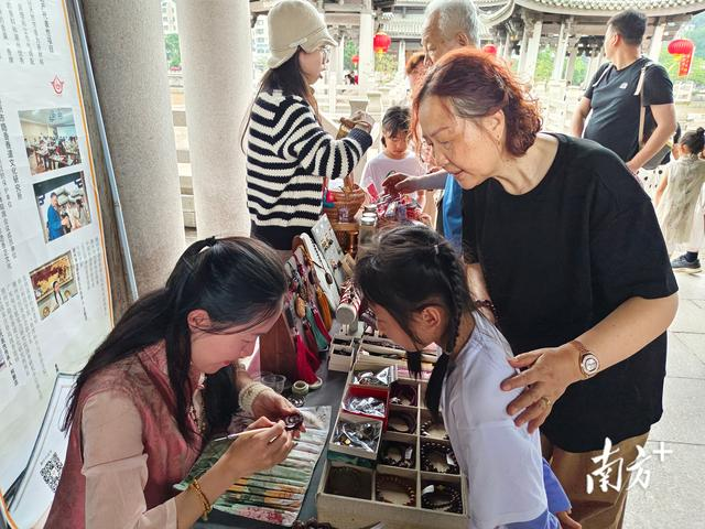 廣濟(jì)橋上,“潮玩古城·潮州非遺集市”活動吸引游客體驗。