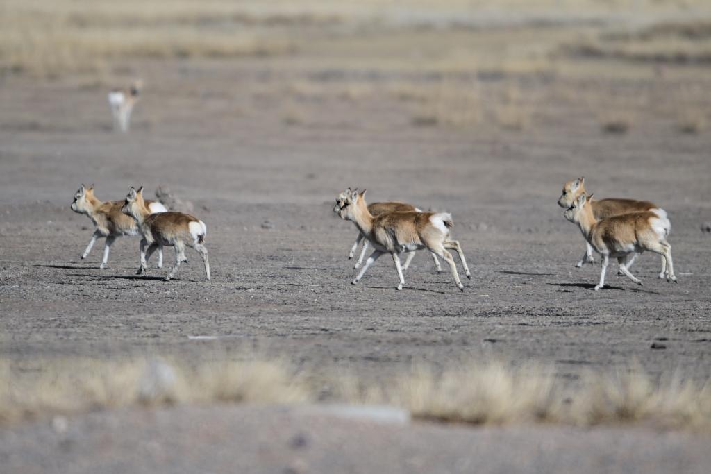這是1月24日在青海省海北藏族自治州剛察縣哈爾蓋鎮(zhèn)境內的草原上拍攝的普氏原羚。新華社記者 張龍 攝