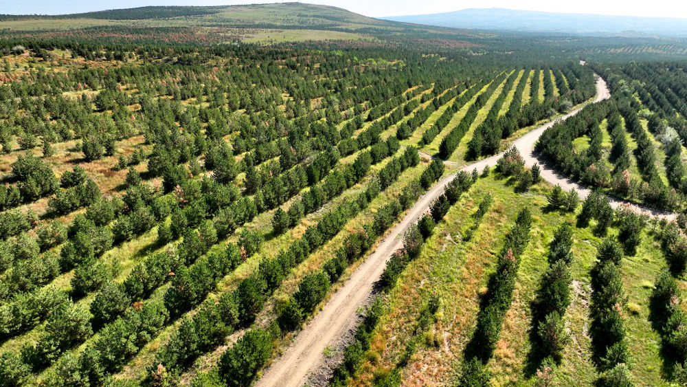 2023年9月10日在內(nèi)蒙古錫林郭勒盟多倫縣拍攝的樟子松林(無人機照片)。多倫縣地處渾善達(dá)克沙地南緣,當(dāng)?shù)赝ㄟ^人工造林、工程固沙等措施治理沙化土地。
