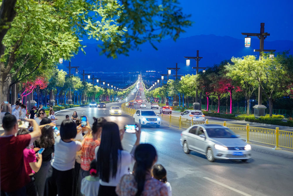 2024年5月21日,游客在升級(jí)改造后的運(yùn)城市“鹽湖006號(hào)燈桿”觀景臺(tái)拍照。