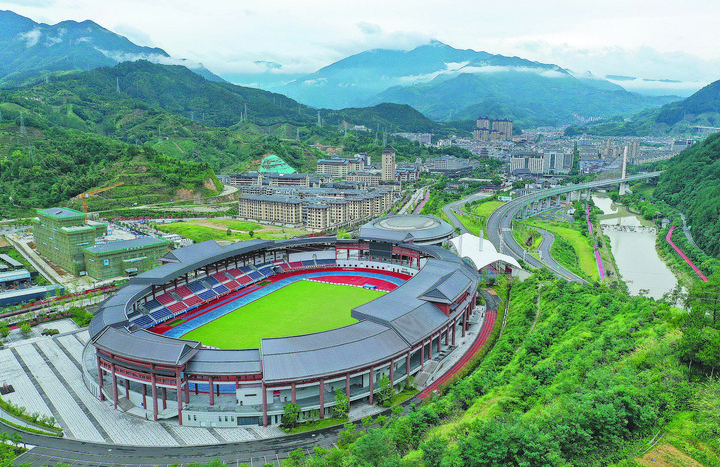 集籃球館、足球場(chǎng)、氣排球場(chǎng)、網(wǎng)球場(chǎng)等設(shè)施于一體的景寧體育公園。記者 林云龍 徐彥 葉錦霞 攝