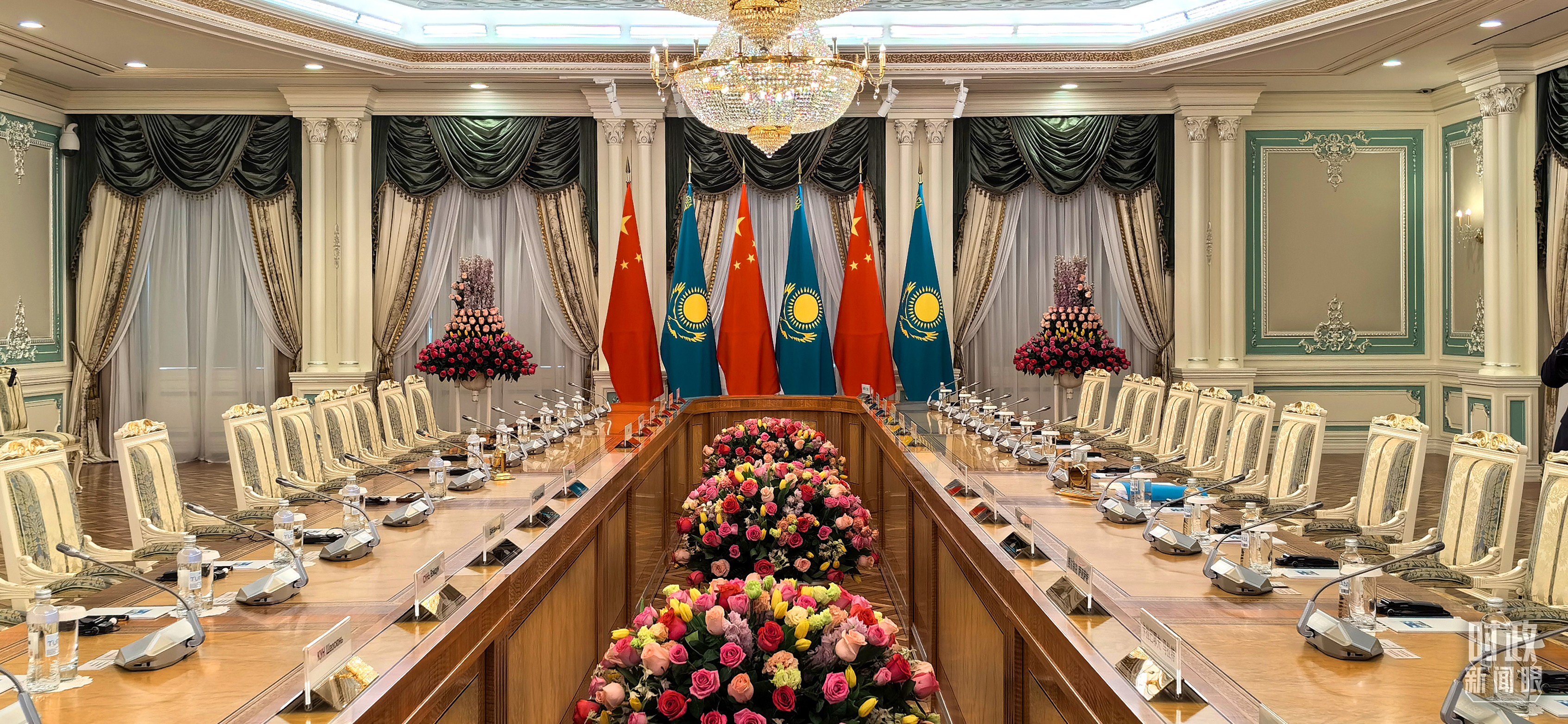 中哈元首大范圍會談開始前的現(xiàn)場。(總臺央視記者馬超拍攝)