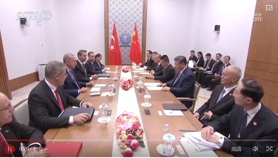 埃爾多安表示,土方高度重視發(fā)展對(duì)華關(guān)系,堅(jiān)定不移致力于推進(jìn)兩國(guó)各領(lǐng)域互利合作,堅(jiān)定不移恪守一個(gè)中國(guó)原則,尊重中國(guó)的主權(quán)和領(lǐng)土完整。中國(guó)是土耳其在世界和亞洲的最重要經(jīng)貿(mào)合作伙伴。土方歡迎更多中國(guó)企業(yè)赴土投資,歡迎更多中國(guó)游客赴土旅游,希望雙方進(jìn)一步加強(qiáng)共建“一帶一路”同土方發(fā)展戰(zhàn)略對(duì)接,擴(kuò)大經(jīng)貿(mào)、基礎(chǔ)設(shè)施、清潔能源等領(lǐng)域合作。土方贊賞中方為促進(jìn)世界和平作出重要貢獻(xiàn),包括在巴勒斯坦問題上秉持公平公正立場(chǎng),希望同中方加強(qiáng)多邊溝通協(xié)作。