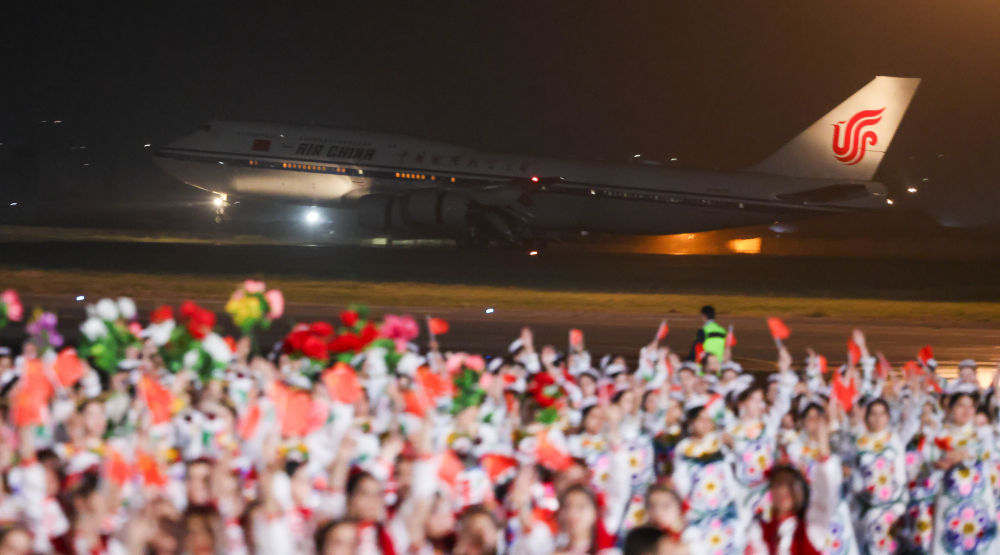 拉赫蒙在機場為習(xí)近平舉行盛大隆重的迎賓儀式。1500多名身著民族盛裝的塔吉克斯坦青年表演富有濃郁特色的中塔歌舞,揮舞中塔兩國國旗,表達對中國最尊貴客人的熱烈歡迎。