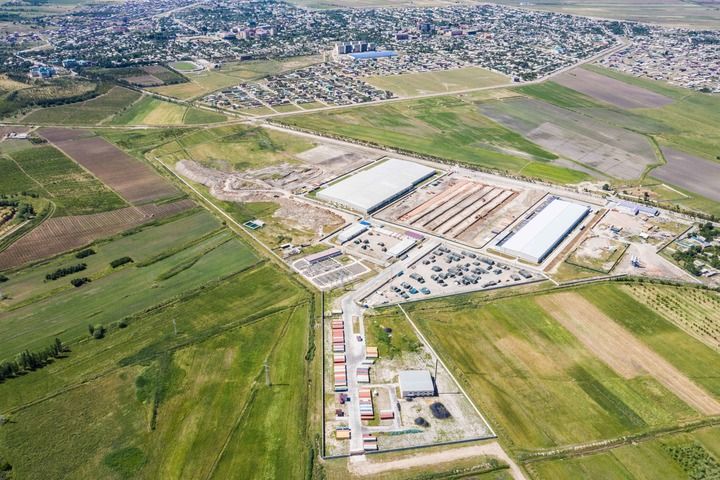 這是2019年5月21日在塔吉克斯坦丹加拉拍攝的中泰紡織廠(無(wú)人機(jī)照片)。新華社記者 張若玄 攝
