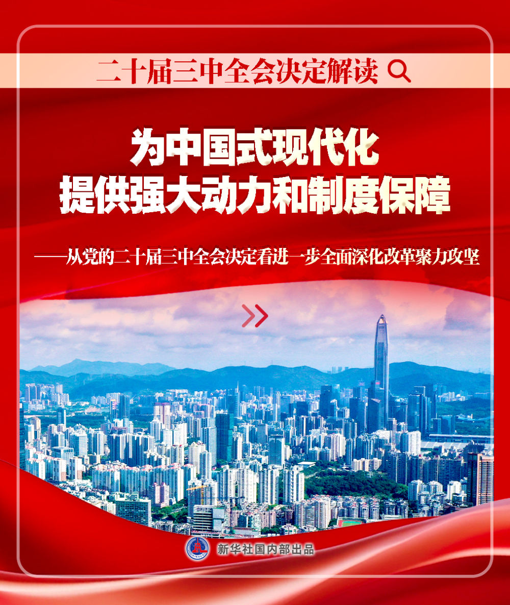 7月21日,《中共中央關(guān)于進(jìn)一步全面深化改革、推進(jìn)中國(guó)式現(xiàn)代化的決定》發(fā)布。新華社推出一系列解讀報(bào)道,深入闡釋黨的二十屆三中全會(huì)決定。