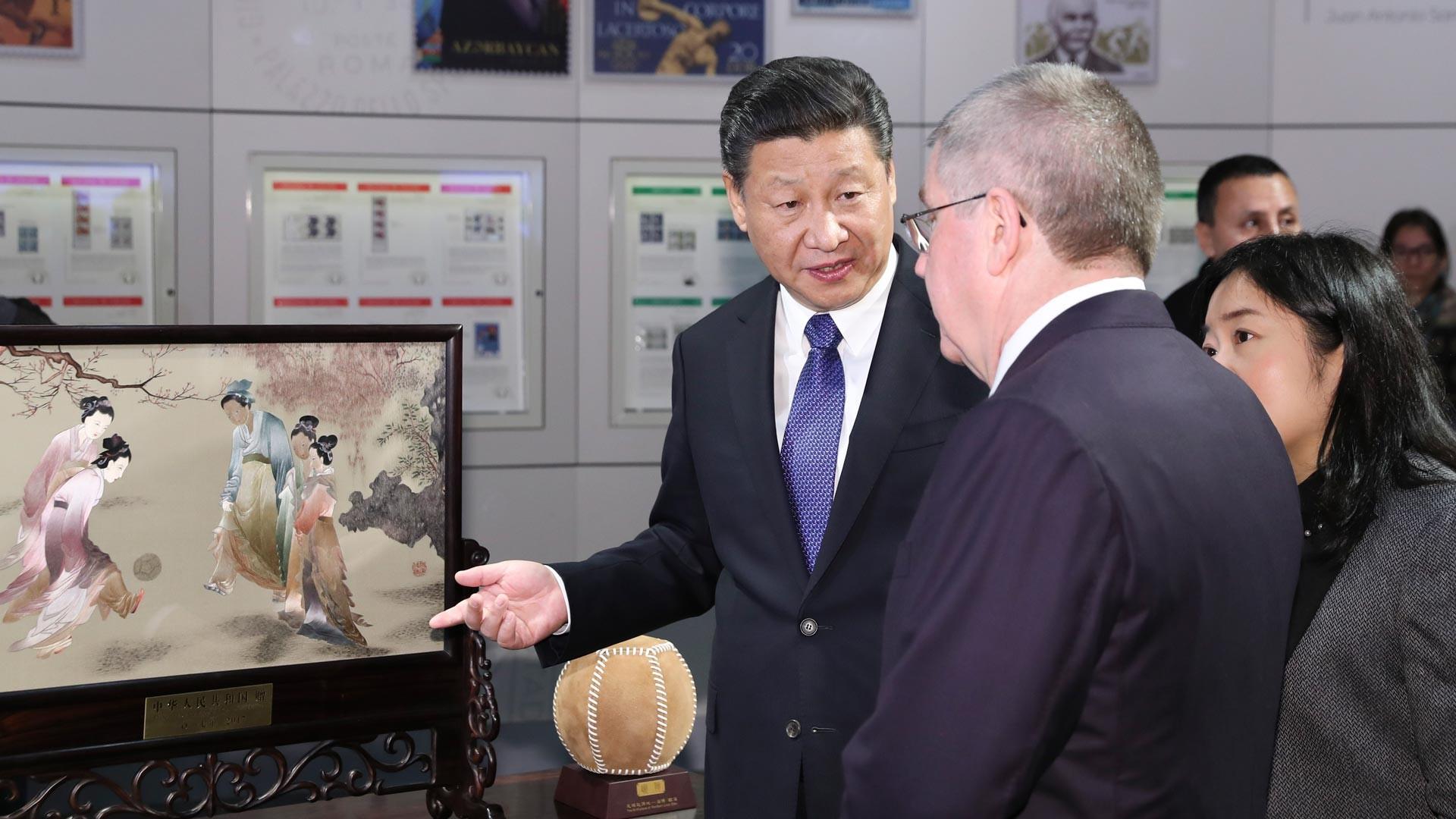 2017年1月,習(xí)近平主席在訪問瑞士期間專程來到坐落在洛桑半山腰的國際奧林匹克博物館。這是中國國家元首首次到訪。習(xí)近平主席代表中國向國際奧委會(huì)贈(zèng)送了蘇繡《仕女蹴鞠圖》,并在留言簿上用中文寫下:“弘揚(yáng)奧運(yùn)精神,促進(jìn)和平發(fā)展”。