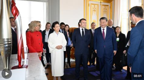 兩個(gè)多月前,國家主席習(xí)近平在巴黎愛麗舍宮同法國總統(tǒng)馬克龍舉行會(huì)談。會(huì)談前,兩國元首夫婦互贈(zèng)禮品。習(xí)近平主席贈(zèng)送給馬克龍總統(tǒng)的是北京雙奧火炬,馬克龍總統(tǒng)則以巴黎奧運(yùn)火炬回贈(zèng)。習(xí)近平主席說:“法國是一個(gè)體育強(qiáng)國,我衷心祝愿巴黎奧運(yùn)會(huì)取得成功。中方將派出高水平代表團(tuán)赴法參賽?!?/p>
