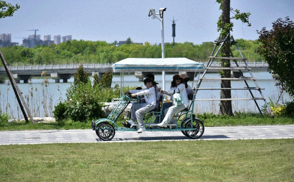 “我以前是大貨車駕駛員,全國各地跑運(yùn)輸。聽說家鄉(xiāng)建了潘安湖景區(qū),我就來景區(qū)做了一名觀光車駕駛員?!苯K省徐州市賈汪區(qū)居民吳繼偉說,“現(xiàn)在的生活用我們當(dāng)?shù)卦拋碇v就是——真好?!?/p>