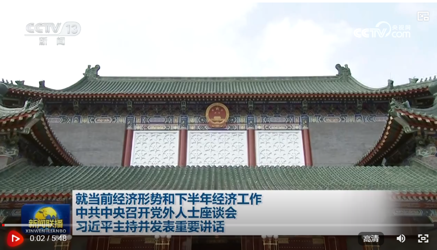 7月26日,中共中央在中南海召開黨外人士座談會,就當(dāng)前經(jīng)濟形勢和下半年經(jīng)濟工作聽取各民主黨派中央、全國工商聯(lián)負責(zé)人和無黨派人士代表的意見和建議。中共中央總書記習(xí)近平主持座談會并發(fā)表重要講話強調(diào),做好下半年經(jīng)濟工作,要全面貫徹落實中共二十大和二十屆二中、三中全會精神,堅持穩(wěn)中求進工作總基調(diào),完整、準(zhǔn)確、全面貫徹新發(fā)展理念,加快構(gòu)建新發(fā)展格局,因地制宜發(fā)展新質(zhì)生產(chǎn)力,著力推動高質(zhì)量發(fā)展,圍繞推進中國式現(xiàn)代化進一步全面深化改革,加大宏觀調(diào)控力度,深化創(chuàng)新驅(qū)動發(fā)展,深入挖掘內(nèi)需潛力,不斷增強新動能新優(yōu)勢,增強經(jīng)營主體活力,穩(wěn)定市場預(yù)期,增強社會信心,增強經(jīng)濟持續(xù)回升向好態(tài)勢,切實保障和改善民生,保持社會穩(wěn)定,堅定不移實現(xiàn)全年經(jīng)濟社會發(fā)展目標(biāo)。
