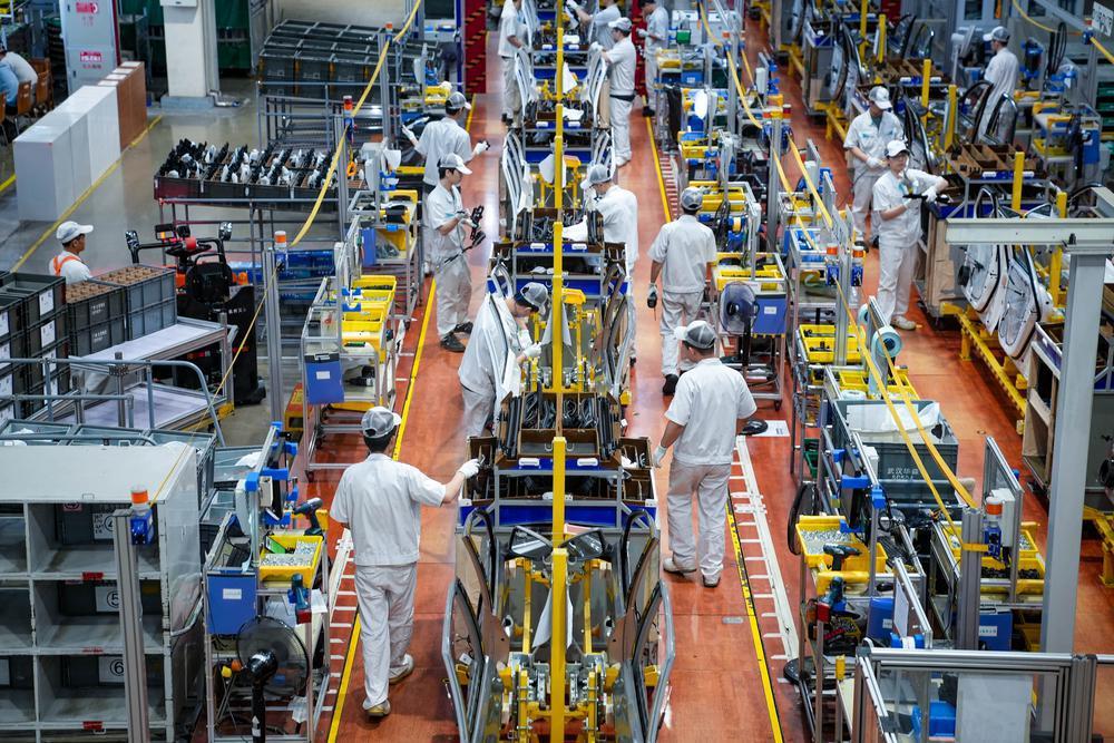 浙江湖州市長興經(jīng)濟(jì)技術(shù)開發(fā)區(qū)一家汽車部件公司,全自動(dòng)機(jī)器人高速運(yùn)轉(zhuǎn)生產(chǎn)新能源汽車配件。