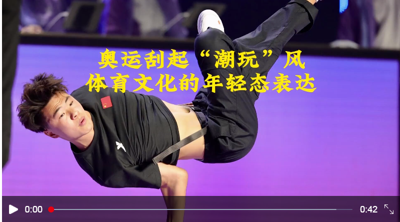 國(guó)際奧委會(huì)主席巴赫曾說(shuō):“霹靂舞是一種真正的表達(dá)方式。觀眾能夠強(qiáng)烈地感受到運(yùn)動(dòng)員的個(gè)性化表達(dá)和表現(xiàn)。霹靂舞不僅僅能傳達(dá)出運(yùn)動(dòng)氣息,更重要的是它能夠讓觀眾看到‘你’的自我表達(dá)?!迸Z舞的火熱,也正體現(xiàn)了中國(guó)體育不怕挫折、勇于拼搏、敢于勝利的優(yōu)良傳統(tǒng)。