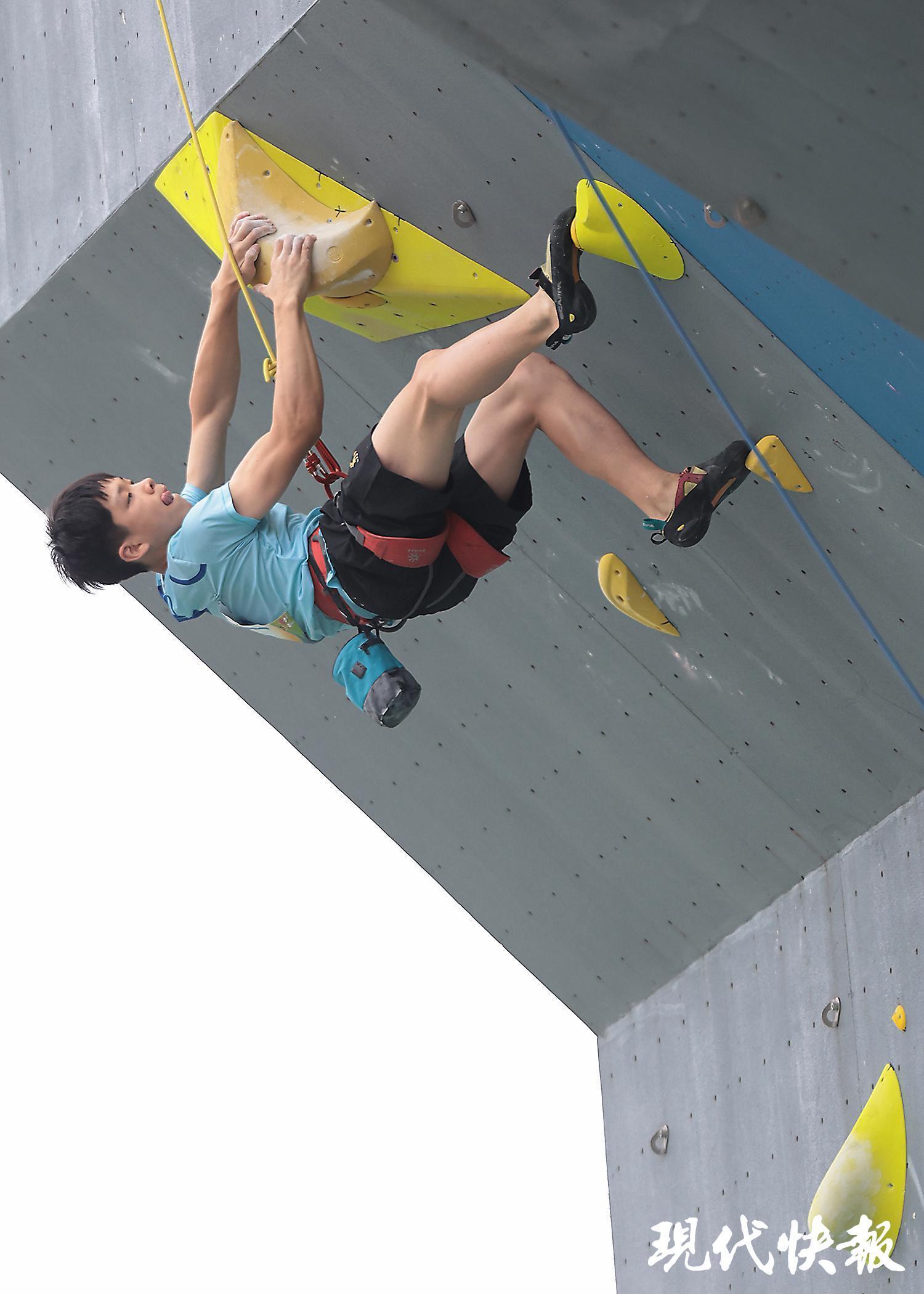 趙一程在江蘇省運(yùn)會(huì)攀巖比賽上“飛檐走壁”