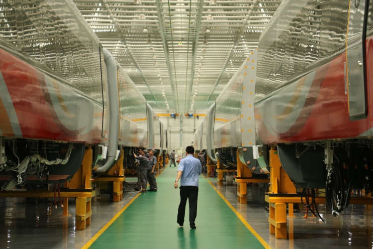 中車長客動車組裝配產(chǎn)線。人民網(wǎng) 任佳暉 攝