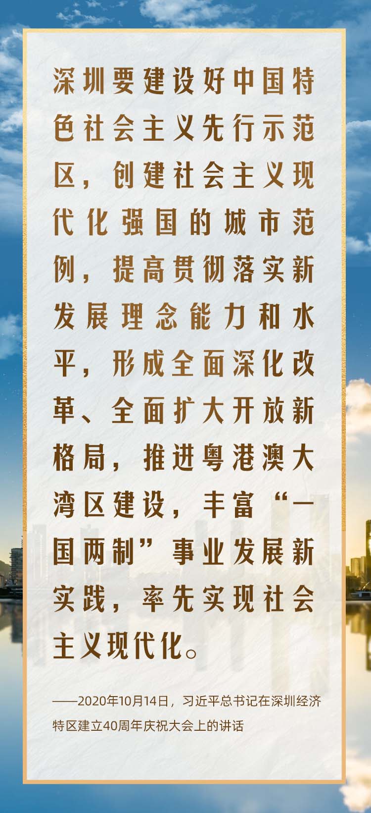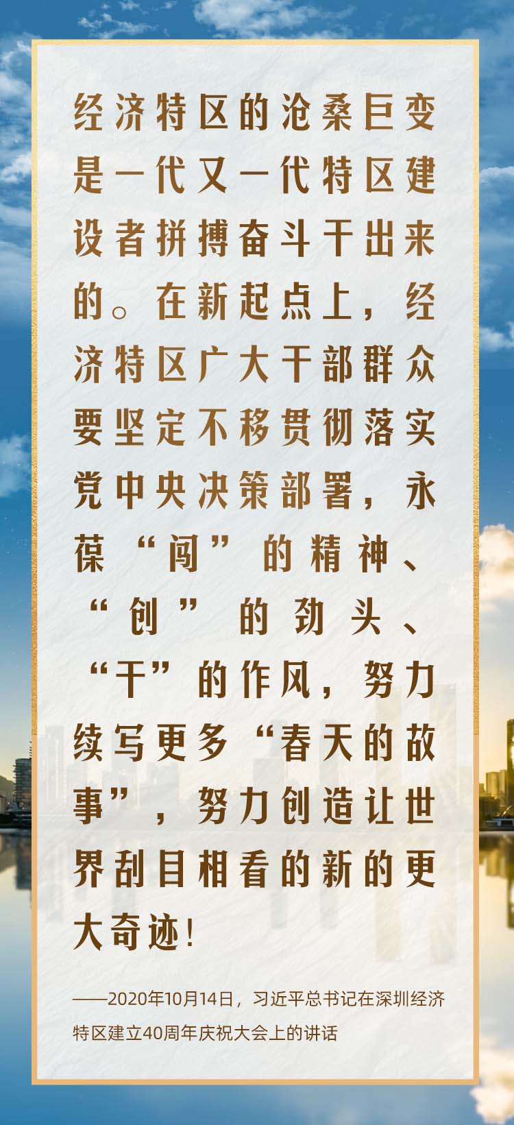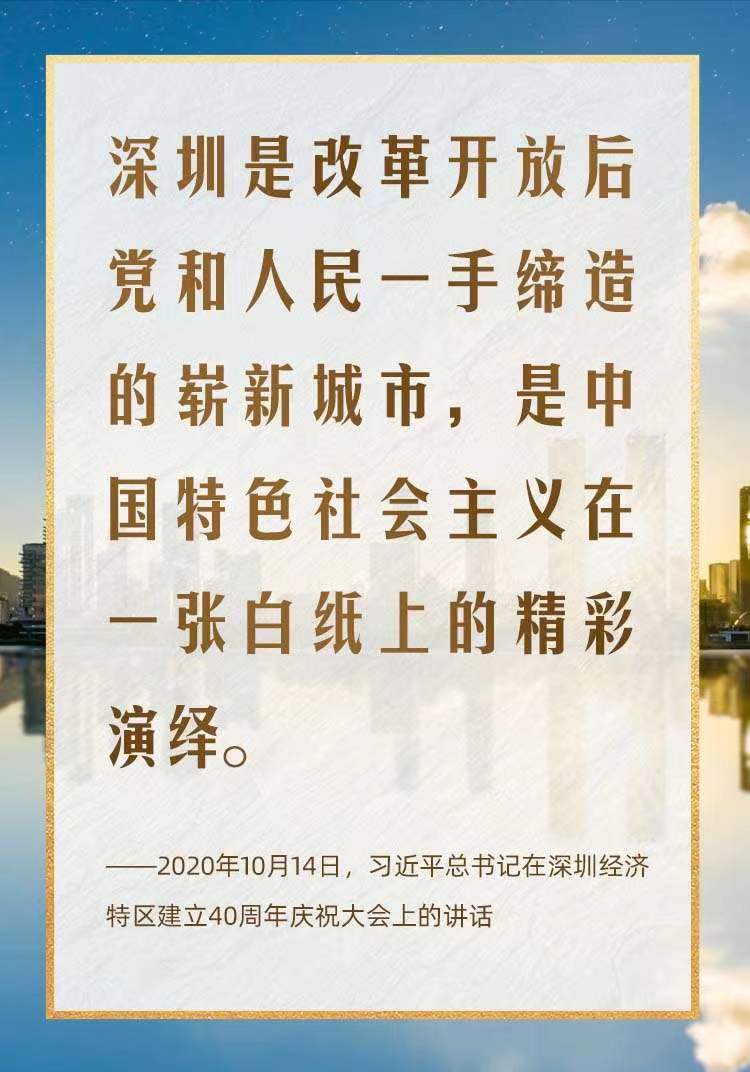 2020年10月,在慶祝深圳經(jīng)濟(jì)特區(qū)建立40周年之際,習(xí)近平總書記又一次來到這里,出席慶祝大會,強(qiáng)調(diào)改革不停頓、開放不止步,在更高起點上推進(jìn)改革開放,推動經(jīng)濟(jì)特區(qū)工作開創(chuàng)新局面。