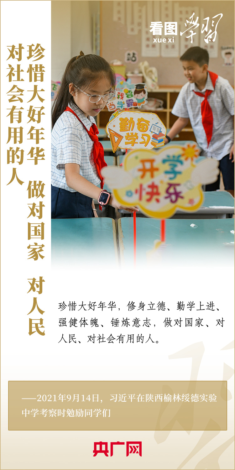 “少年兒童是祖國(guó)的未來(lái)?!币恢币詠?lái),習(xí)近平總書(shū)記高度重視和關(guān)心青少年的健康成長(zhǎng)。每每走到校園和學(xué)生們中間,總書(shū)記總會(huì)與他們談學(xué)習(xí)、談理想、談成長(zhǎng),鼓勵(lì)他們努力為自己贏得人生出彩的機(jī)會(huì),做對(duì)國(guó)家、對(duì)人民、對(duì)社會(huì)有用的人。又是一年開(kāi)學(xué)季,讓我們一起重溫總書(shū)記對(duì)莘莘學(xué)子的殷切期望。一起來(lái)學(xué)習(xí)!