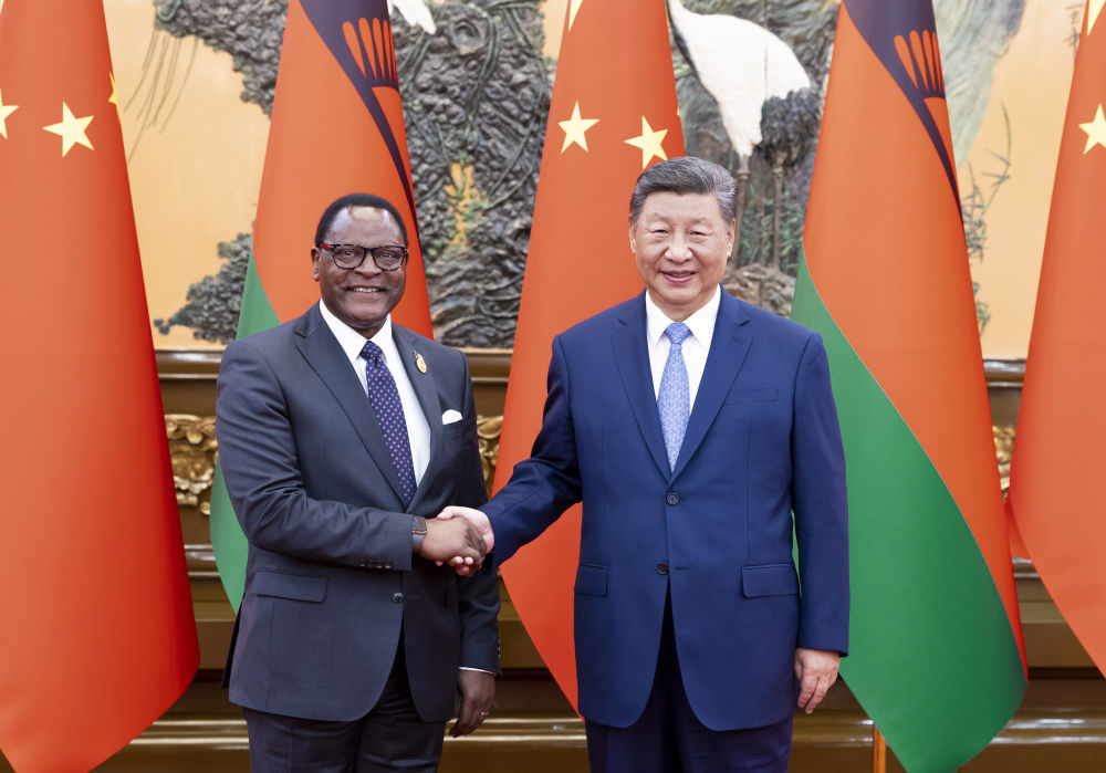 9月3日上午,國家主席習近平在北京人民大會堂會見來華出席中非合作論壇北京峰會的馬拉維總統(tǒng)查克維拉。新華社記者 翟健嵐 攝
