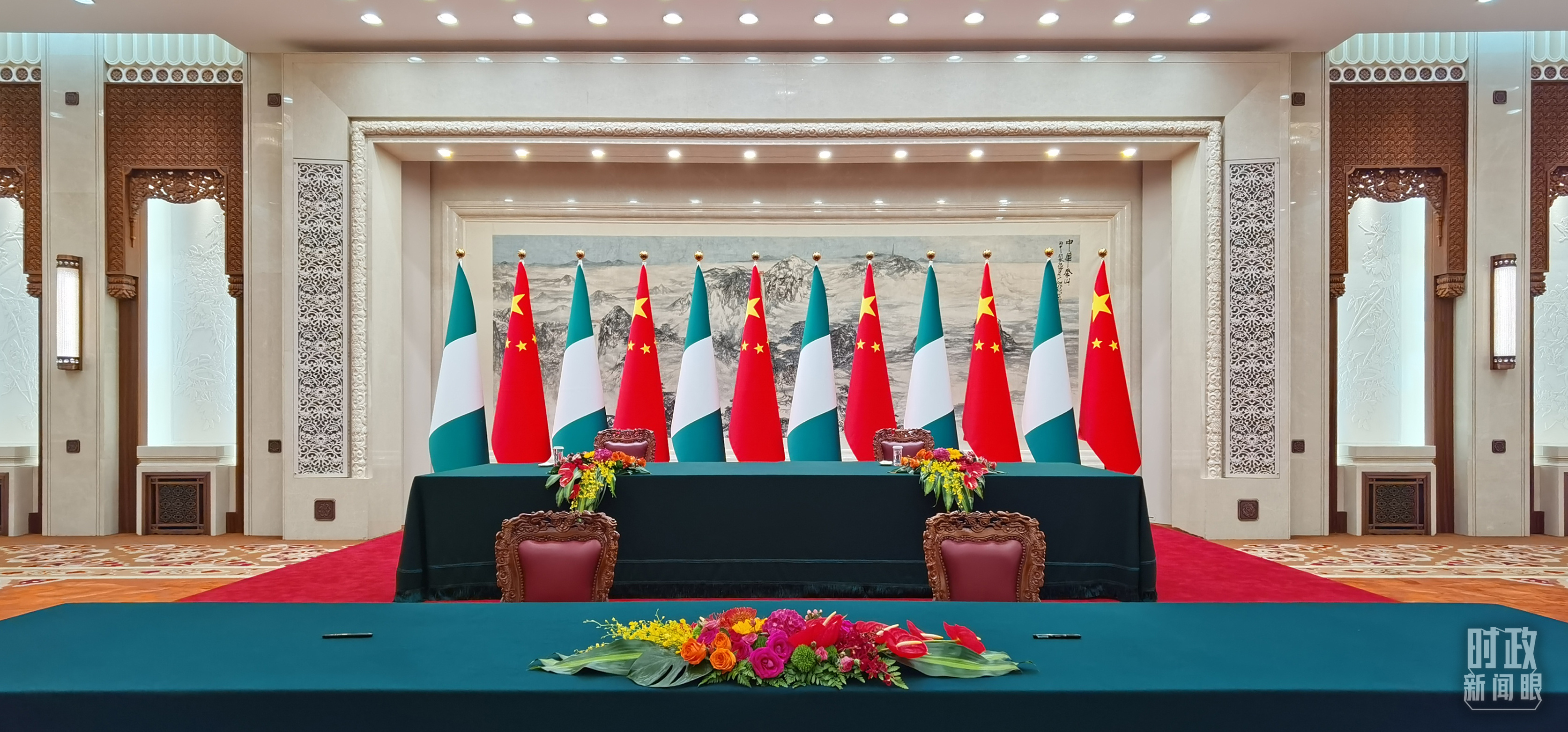 △中尼兩國(guó)元首在這里共同見(jiàn)證簽署多項(xiàng)雙邊合作文件,這是開(kāi)始前的現(xiàn)場(chǎng)。(總臺(tái)央視記者郭鴻拍攝)