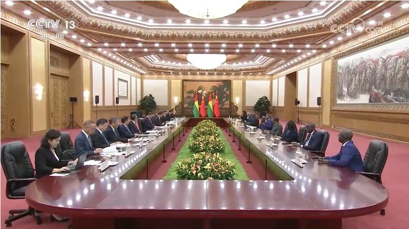 9月5日晚,國家主席習近平在北京人民大會堂會見來華出席中非合作論壇北京峰會的幾內(nèi)亞比紹總統(tǒng)恩巴洛。
