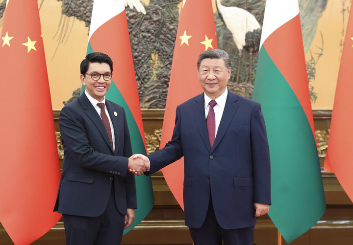 9月6日下午,國家主席習近平在北京人民大會堂會見來華出席中非合作論壇北京峰會的馬達加斯加總統(tǒng)拉喬利納。兩國元首宣布,將中馬關系提升為全面戰(zhàn)略合作伙伴關系。