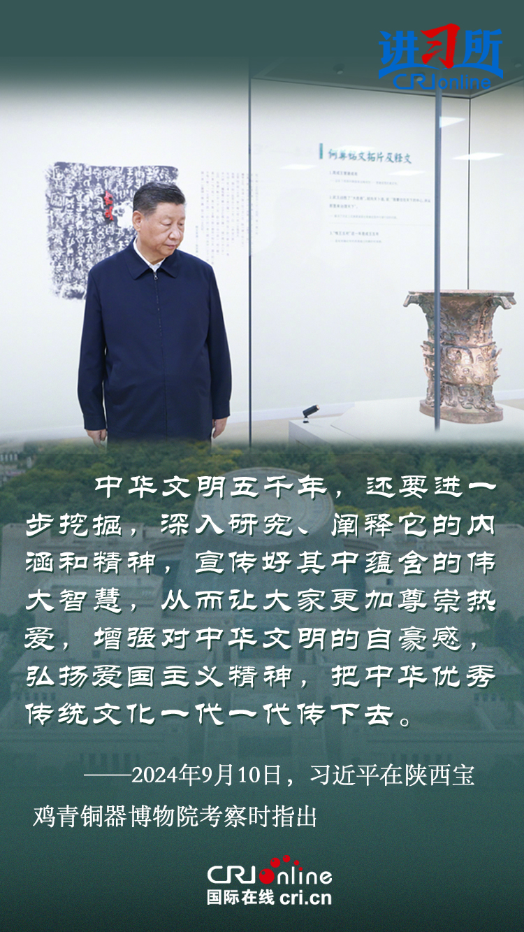 9月10日下午至11日上午,中國國家主席習(xí)近平先后來到陜西省寶雞市和甘肅省天水市考察調(diào)研。從關(guān)中到隴原,習(xí)近平走進(jìn)寶雞青銅器博物院、伏羲廟、麥積山石窟,考察文物保護(hù)利用及文化遺產(chǎn)保護(hù)傳承情況。