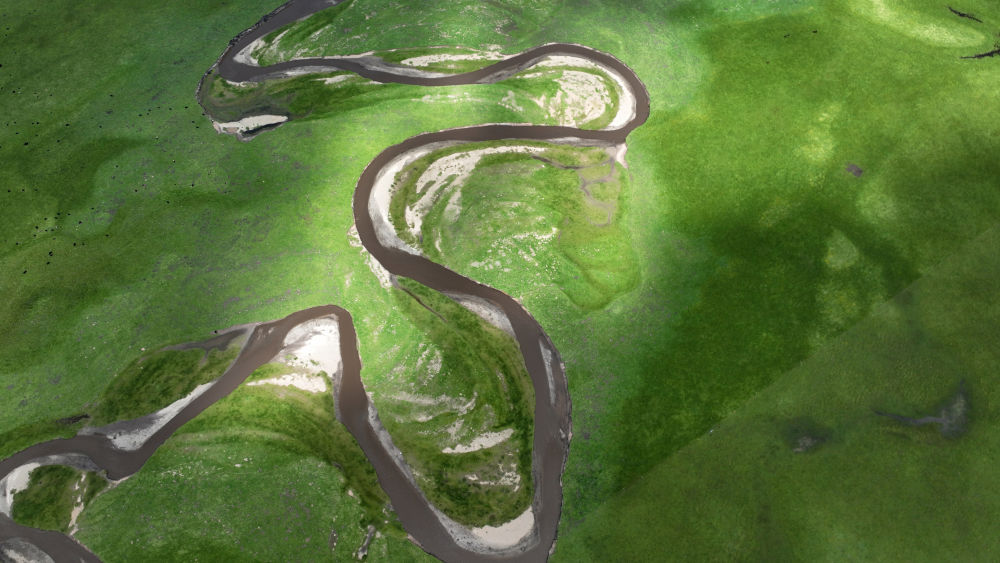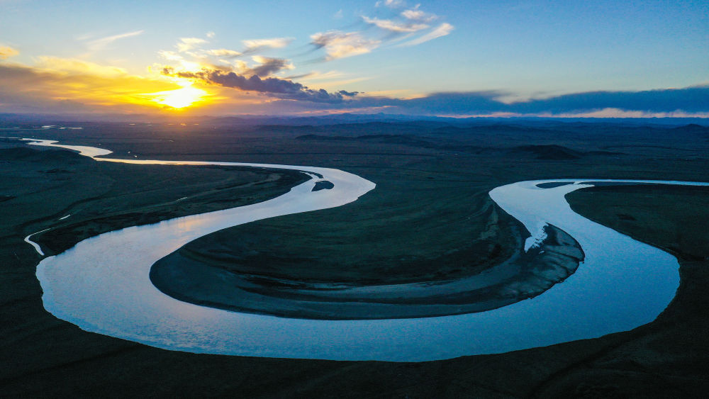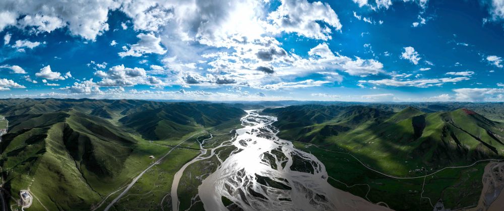 2024年7月31日在青海省果洛藏族自治州達日縣境內拍攝的黃河(無人機全景照片)。