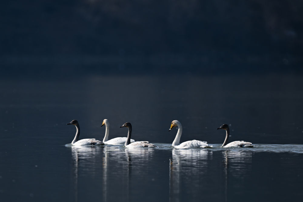 2023年11月30日,天鵝在青海省海東市化隆回族自治縣群科鎮(zhèn)境內的黃河上游弋。近年來,青海省加大力度保護治理境內黃河流域,改善當?shù)厣鷳B(tài)環(huán)境,為越冬候鳥提供良好棲息地。