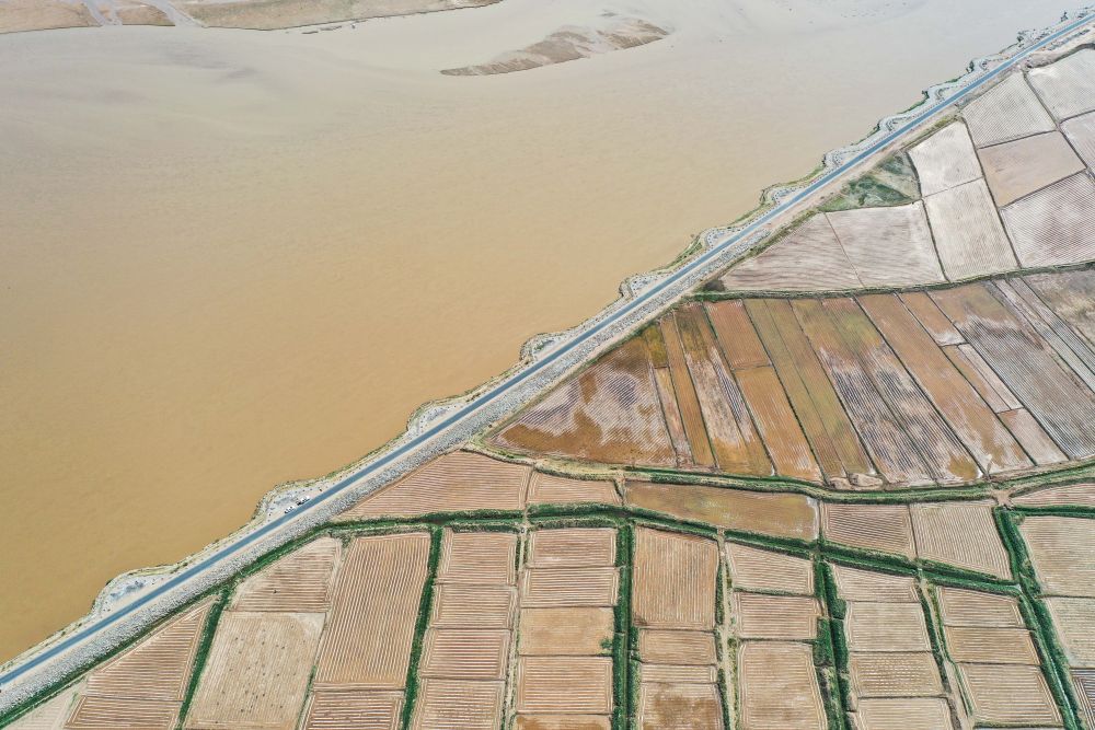 2024年5月26日在內蒙古巴彥淖爾市臨河區(qū)拍攝的黃河(無人機照片)。巴彥淖爾市位于黃河“幾字彎”北端,擁有富饒的河套灌區(qū),引黃灌溉面積達1000多萬畝。近年來,在引黃灌溉工程支撐下,河套灌區(qū)年均糧食總產量達60億斤以上。