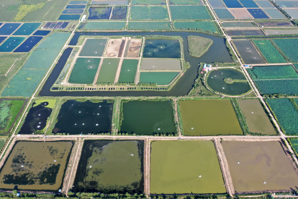 2024年8月13日在山西省臨猗縣薛公村拍攝的蟹塘(無人機照片)。薛公村位于黃河岸邊,有5000多畝黃河灘涂和近5000畝荒溝。當?shù)赝ㄟ^將荒溝和灘涂進行整合,發(fā)展特色水產養(yǎng)殖,讓守著黃河水、住在黃河灘的薛公村村民有了新的致富路。