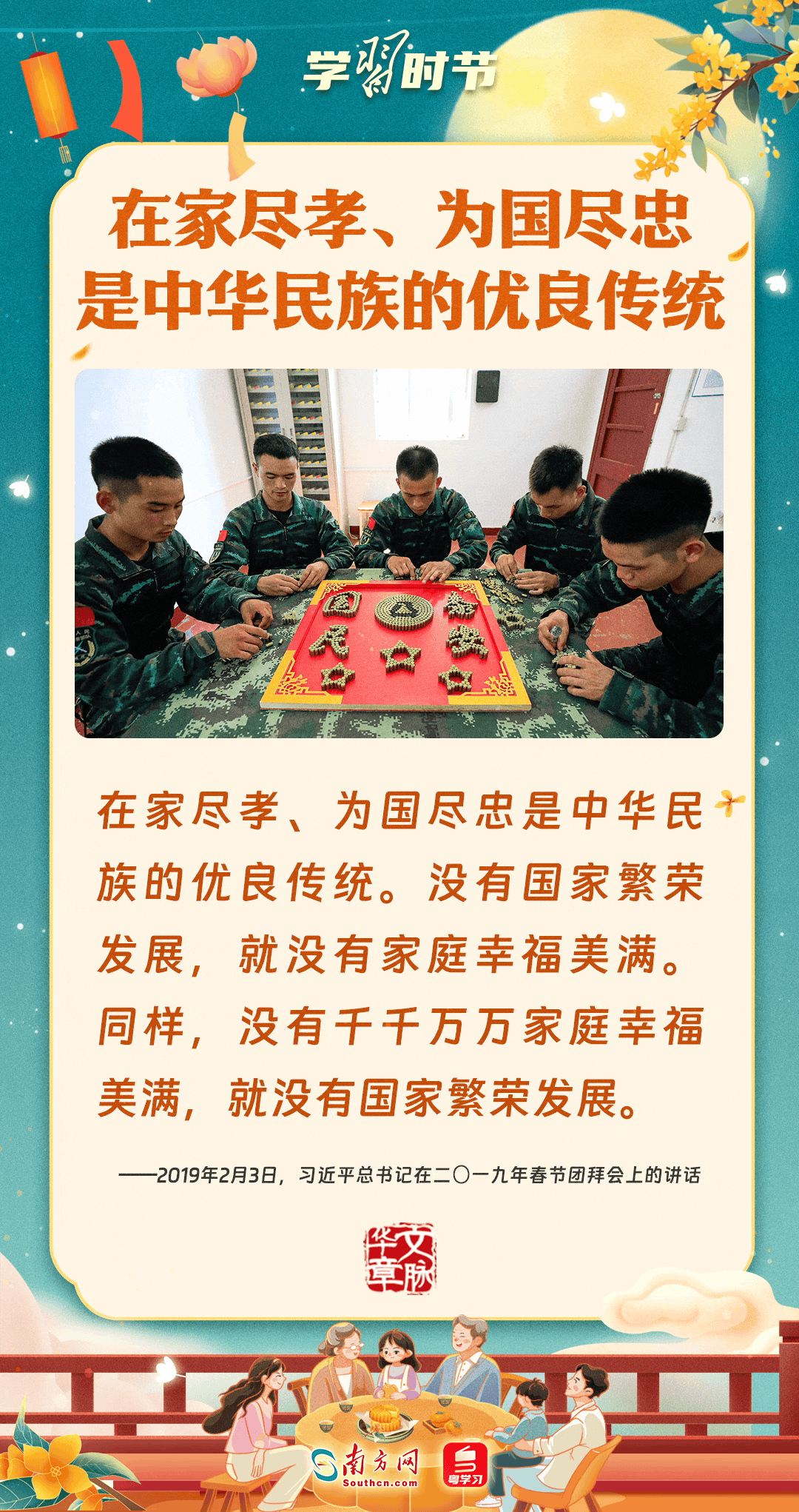 明月寄相思,家國(guó)總關(guān)情。作為中華優(yōu)秀傳統(tǒng)文化的重要載體之一,中秋節(jié)不但寄托著海內(nèi)外華人對(duì)闔家團(tuán)圓的美好期許,還承載著深厚的故鄉(xiāng)情、家國(guó)情。習(xí)近平總書(shū)記曾在多個(gè)場(chǎng)合深刻闡述個(gè)人、家庭與國(guó)家之間的關(guān)系,強(qiáng)調(diào)要厚植家國(guó)情懷,把實(shí)現(xiàn)個(gè)人夢(mèng)、家庭夢(mèng)融入國(guó)家夢(mèng)、民族夢(mèng)之中。中秋佳節(jié),讓我們一起回顧總書(shū)記那些經(jīng)典話語(yǔ),共同感受他至深至厚的家國(guó)情懷。