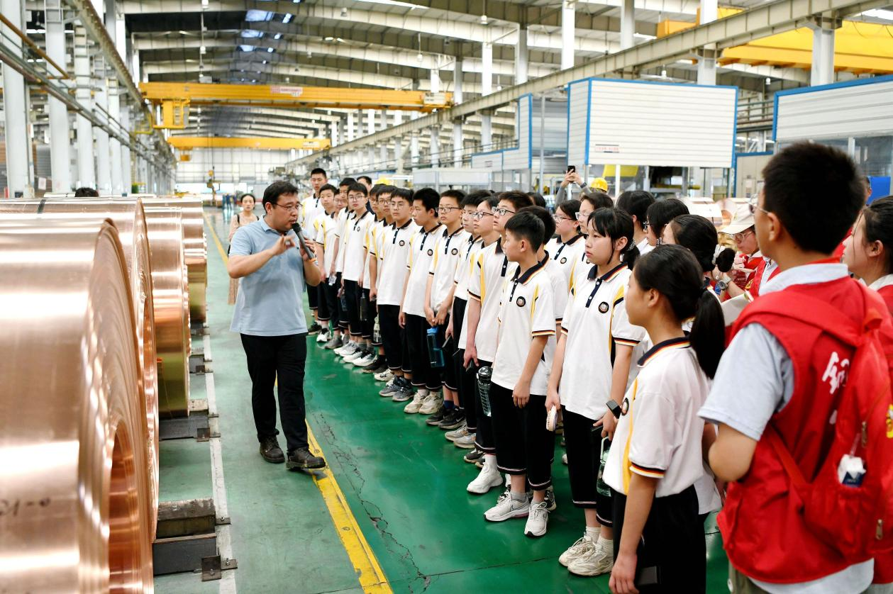 在安徽銅陵,銅陵七中的老師們把思政課搬進制造車間,帶領同學們“沉浸式”體驗高科技銅產(chǎn)品生產(chǎn)流程,近距離感受中國制造業(yè)和家鄉(xiāng)銅工業(yè)的蓬勃發(fā)展歷程。